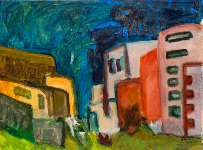 En m'efforçant de capturer la ville de Perpignan sur mes toiles, j'ai commencé à bouger avec elle, à ressentir son souffle. Mes pinceaux m'ont permis de pénétrer dans les détails, d’explorer les différentes couleurs de maisons, les toits, les ombres, les trottoirs, les sculptures. Bien sûr, je ne peins pas les détails de manière précise—mes gestes impatients ne me le permettent pas—mais je capte le rythme en écoutant la musique. Je peins le rythme, je peins ce qui reste après la contemplation du sujet. »